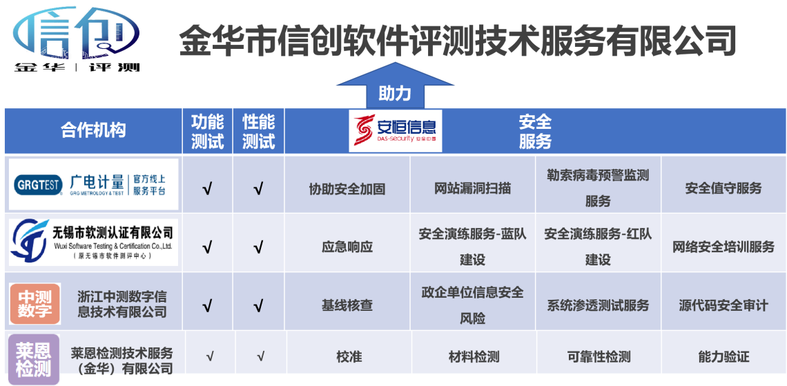 公司借助学校组建的软件评测实验室团队,申请获得中国合格评定国家认可委员会(CNAS软件测试资质证书),具备提供软件评测资质资格。同时公司和广电计量、安恒信息等企业签订合作协议,补齐公司评测资质,具备对外提供软件功能、性能和安全测试。
