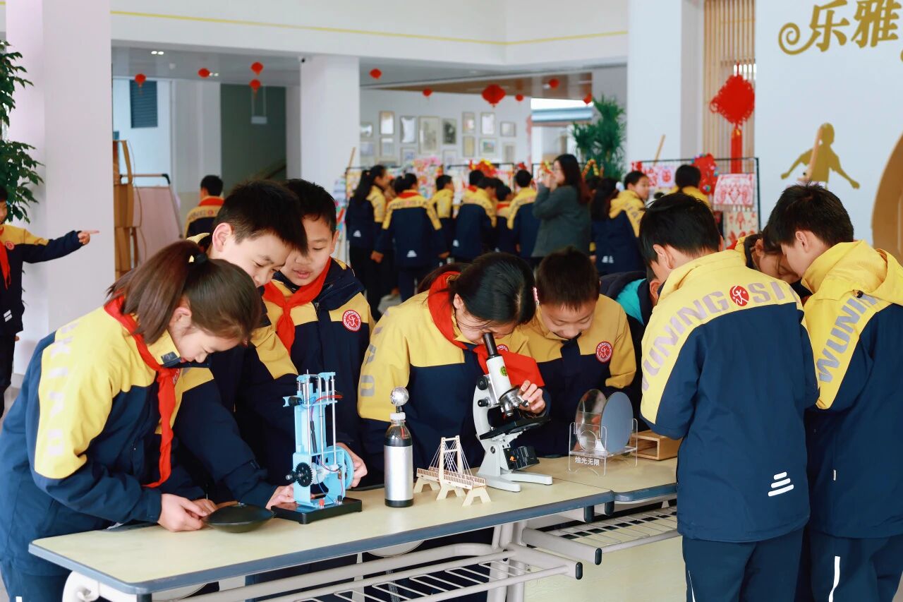 而“乐学”课程则打破学科壁垒,推进融通式育人:王菁菁推动婺剧课程采用“面上普及+点上提升”模式,学科渗透与社团培育结合,多个婺剧节目获金华市、浙江省一等奖,学生还登上央视现场展演;体育课程落实“健康第一”理念,每日运动超2小时,分年级开展特色活动、举办体测运动会,既带动学生爱上运动,也助力学业提升,田径项目曾连续四年在省阳光体育运动会上获得团体总分第一名,浙江省体育特色学校的荣誉当之无愧;在王菁菁的大力推动下,科创教育通过编程、无人机等社团及“乐雅聚慧空间”,联动科普机构开展实践,提升学生科创能力;“乐雅悦读”课程以“一节一室一角一屋”常态化推进,涵盖教师分享、学生主题活动、亲子共读等形式,让阅读成为师生日常的精神滋养。